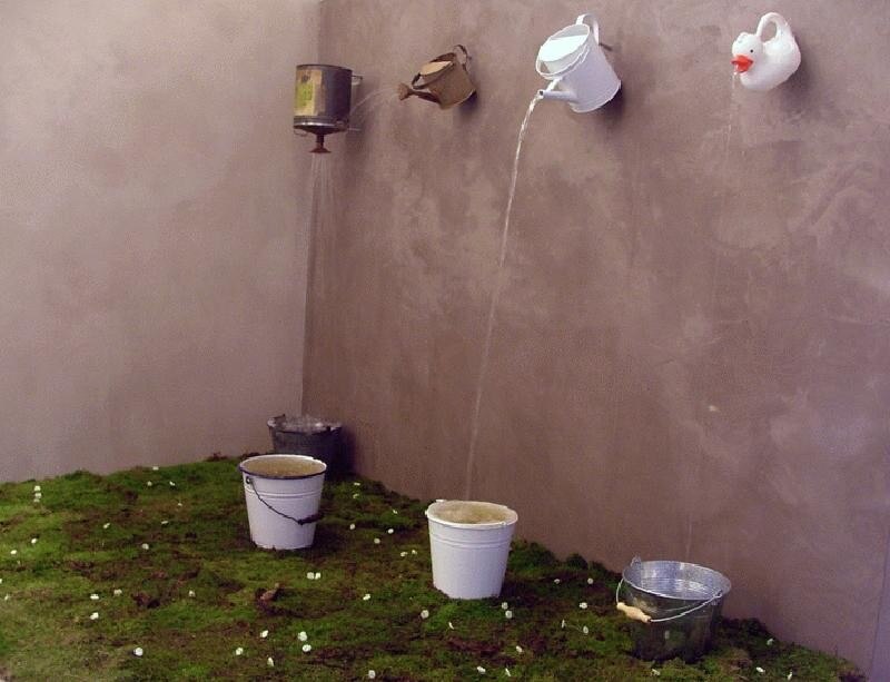 Passeggiata tra tubi e secchi, annaffiatoi, catini, rubinetti e