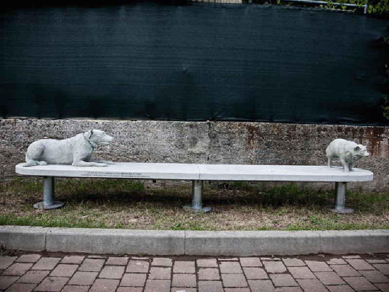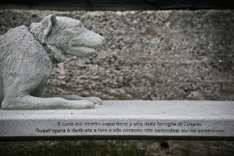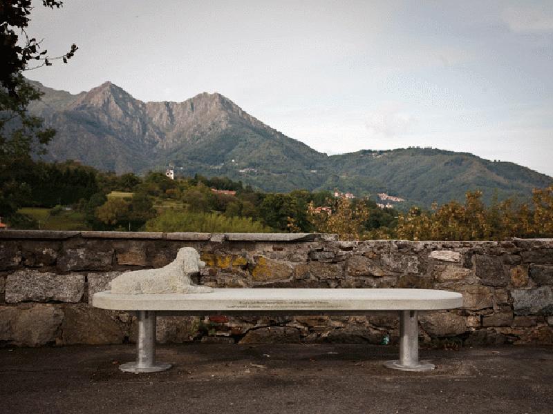 Il risultato finale è un’opera pubblica che può essere utilizzata da tutti: una serie di semplici oggetti d’uso, delle panchine in cemento, mimetizzate nel contesto e antimonumentali, seppure rese speciali dalla presenza dei ritratti dei cani. Su ciascuna, una didascalia esplicativa che funge sia da dedica, che da titolo: Il cane qui ritratto appartiene a una delle famiglie di Trivero. Quest’opera è dedicata a loro e alle persone che sedendosi qui ne parleranno.