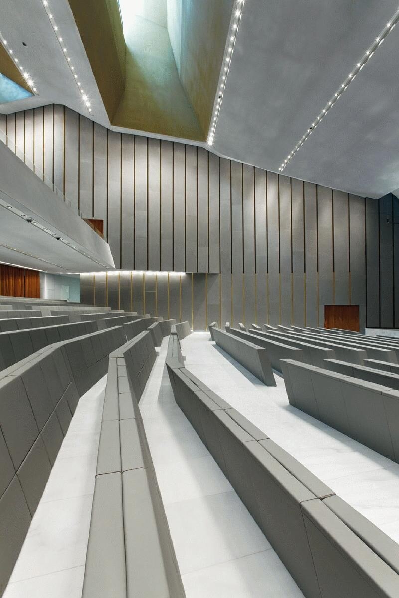 La complessa articolazione dei livelli degli spazi comuni permette alla luce naturale di penetrare in profondità, sino al cuore dell’edificio posto sotto il piano stradale. La nuova sede dell'università Bocconi ha vinto il Premio Internazionale Architetture di Pietra 2009, promosso da Marmomac. (foto 6)