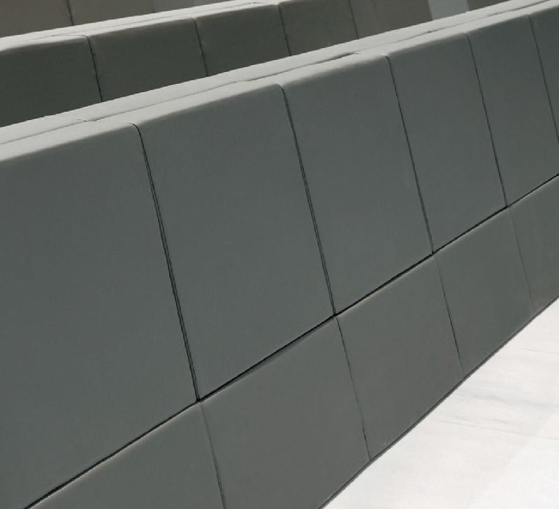 La seduta nella configurazione chiusa si presenta come un basso muro compatto, inserito nel piano pavimentale. Ogni elemento di possibile disturbo è studiato per rimanere nascosto all’interno del volume. (foto 3)