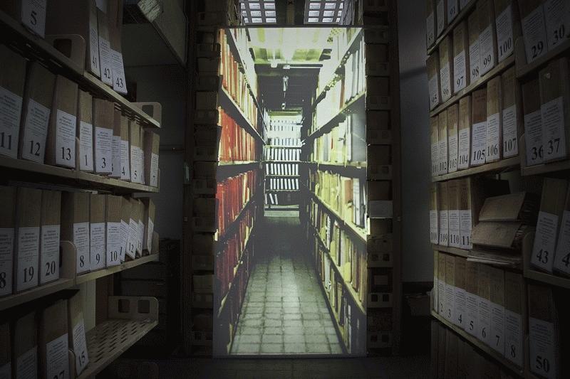 Lungo gli spazi inediti dei depositi dell'Archivio Centrale il pubblico si ritrova in una sorta di labirinto. La sua percezione è distorta da tre video proiezioni in soggettiva dal titolo Passages che inaspettatamente trasformano i corridoi in coni prospettici che si ripetono all’infinito. Un labirinto è anche una struttura capace d’intrappolare chi tenti di attraversarlo: è quello che può accadere con le due opere intitolate Cage dove l’iterazione pressoché infinita delle scaffalature include il visitatore stesso, che diventa parte della memoria istantanea dell’archivio.