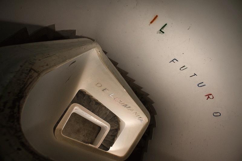 Più minimal, sottile, è l’installazione realizzata con le fotografie dei viaggi dell’artista: venti light box intitolati Anomalie, in cui ogni pezzo riceve un’illuminazione anomala su un particolare piccolo ma fondamentale. Le pareti di un’altra scalinata ospitano l’opera Tutto Niente, un lavoro di light art – territorio frequentemente esplorato da quest’artista – che ripropone un’opposizione tra concetti puri, qui richiamati sotto forma di scritte in corsivo realizzate con tubi neon di colore tra loro complementare. Un lunghissimo corridoio che incrocia una fitta serie di alti scaffali sembra materializzare una pulsione ossessiva alla catalogazione. E' il luogo atto ad ospitare La Biblioteca di Baabel, installazione basata sul rapporto cromatico tra carta e luce, in cui una citazione di Borges - composta da un elenco di aggettivi riguardanti la "biblioteca ideale" - è stata rielaborata dall'artista.