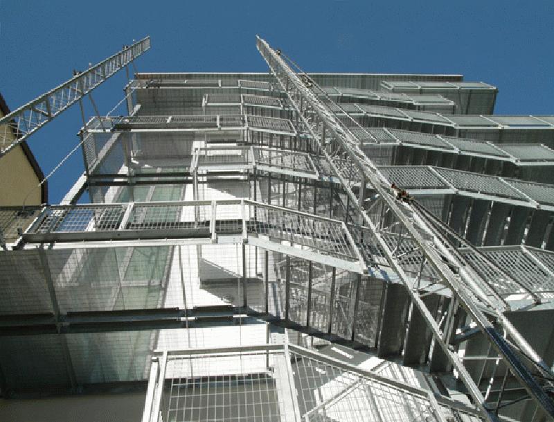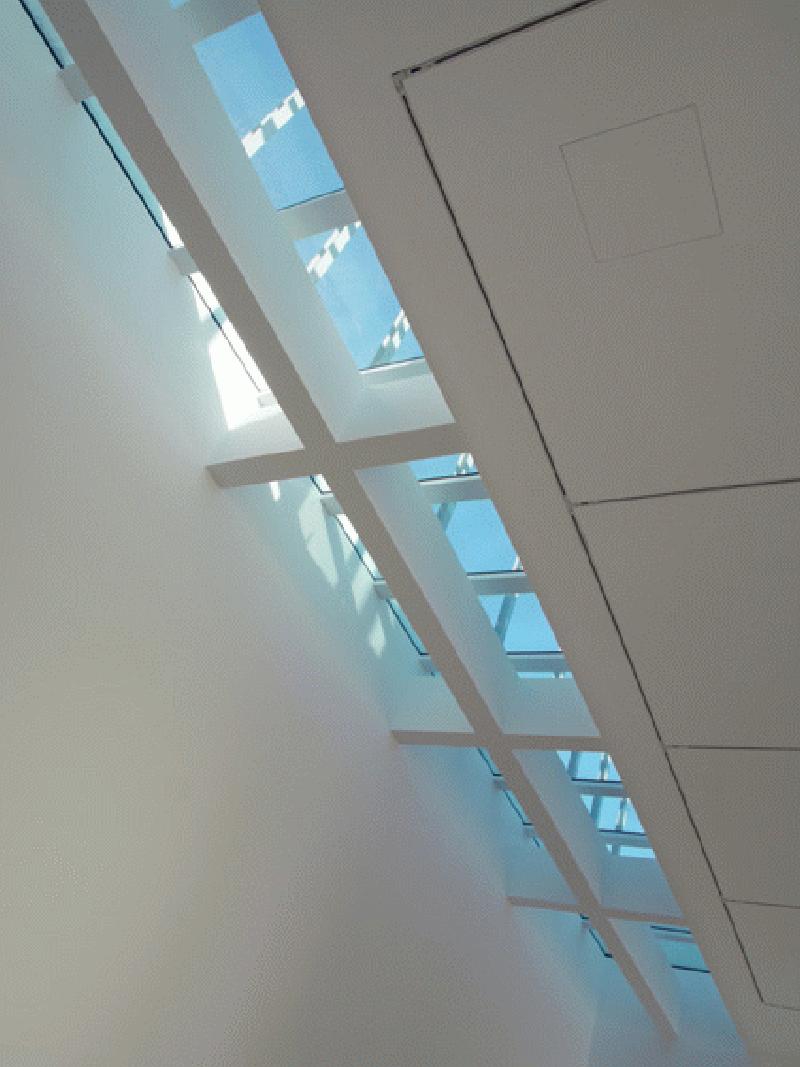 Lo spazio e la luce sono gli elementi che definiscono i grandi volumi delle sale espositve, con altezze tali da accogliere anche le opere di dimensioni più importanti, mentre uffici e servizio si trovano sul fondo della galleria. La scelta di posizionare le scale all'esterno dell'edificio ha permesso di sfruttare al massimo gli spazi interni fornendo al contempo un elemento di linguaggio fortemente caratterizzante la facciata posteriore. La struttura delle scale, realizzata interamente in ferro zincato, si articola con doppie rampe che si incrociano e conducono alle alte vetrate di accesso alle sale.