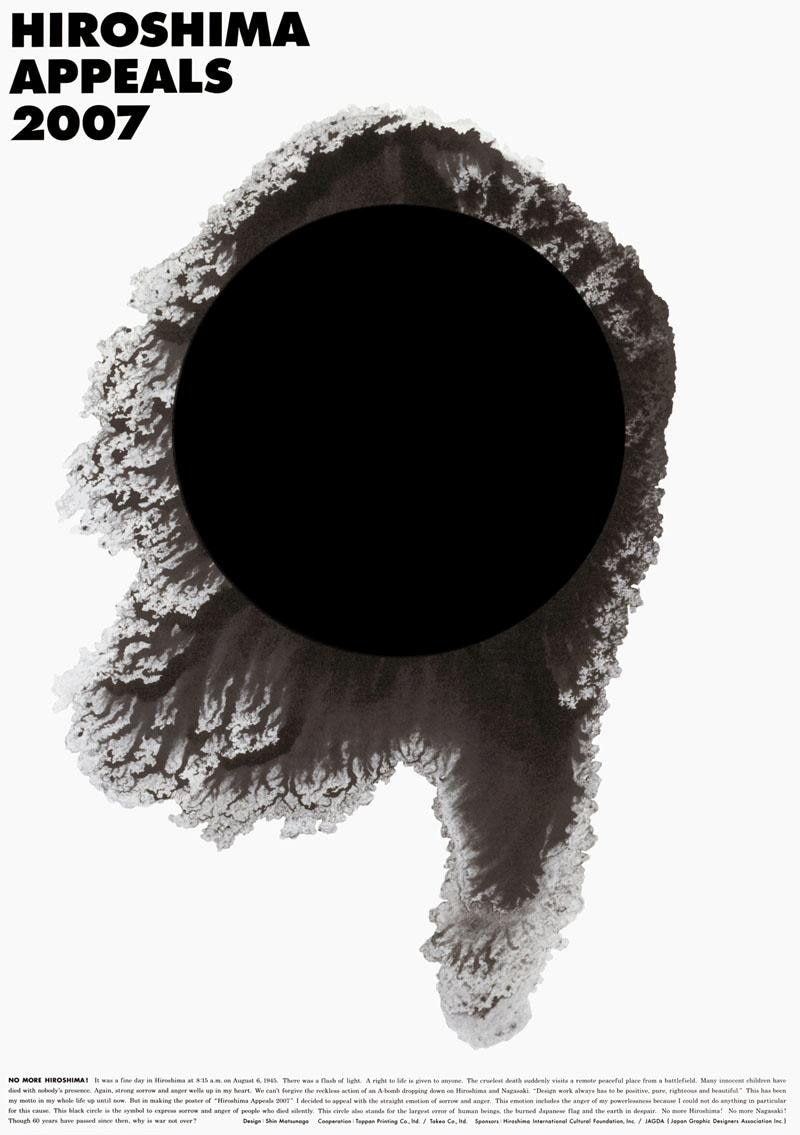 Il 6 agosto di quest'anno, inoltre, si commemorano i sessantacinque anni dalla tragedia di Hiroshima (e di Nagasaki il 9 agosto), un evento che viene ricordato annualmente e con grande senso di responsabilità dai maggiori graphic designers giapponesi attraverso la produzione di una serie di manifesti dal titolo "Hiroshima Appeals" campagna di sensibilizzazione per la pace tra le più significative espresse attraverso l'arte grafica. Alcuni di questi manifesti, i più rappresentativi dell'ultimo decennio, sono stati selezionati per la mostra a ricordo delle migliaia di vittime dirette e indirette provocate negli anni dallo scoppio delle due bombe atomiche.