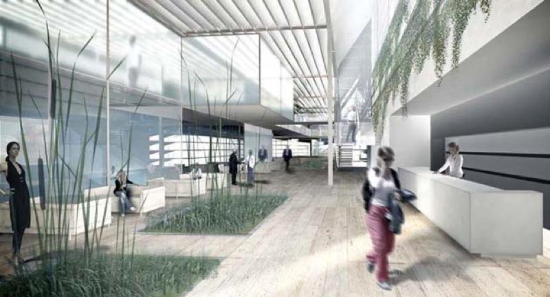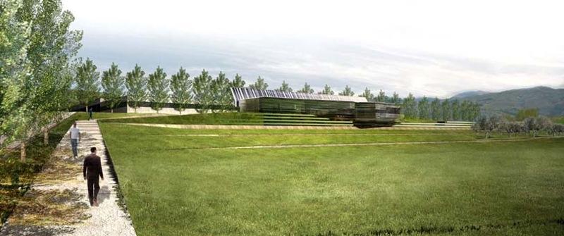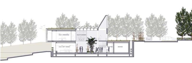 Il progetto sviluppa il tema della nuova sede CSAI spa assumendo l’eccezionale geografia dell’area come condizione irripetibile e ponendo al centro dell’impegno progettuale il rapporto tra Architettura e Paesaggio. L’edificio per uffici e servizi verrà a definire il nuovo bordo dell’impianto di “casa Rota”, ponendosi quale interfaccia comunicativa tra azienda e territorio: la nuova architettura mette l’uomo e le sue molteplici relazioni col luogo fisico al centro del processo progettuale. Il concept del progetto nasce dalla ricerca di un punto di equilibrio tra opposti (leggerezza/massività, apertura/chiusura, dinamismo/staticità) capace di un efficace inserimento della nuova architettura nel contesto, mirato a coniugare la necessità di una continuità della collina erbosa al contorno con quella di creare un punto di gravità nel nuovo spazio di lavoro. Volume puro, dunque, essenziale, dato da parallelepipedi distesi sul piano che sanno intessere rimandi e relazioni visive non solo al tema dei terrazzamenti e degli argini, ma anche con la tipologia dei complessi rurali e degli spazi aperti al contorno. La continuità fisica e percettiva tra tali ambiti a verde e la grande galleria centrale, inondata di luce naturale e abitata da presenze arboree e vegetali, costituisce il fulcro del progetto e l’idea fondativa dello stesso. Questo “cuore verde”, ideale estensione e fusione del paesaggio naturale esterno con quello più controllato dell’interno, rappresenta la natura, centro di interesse della politica ambientale di CSAI.