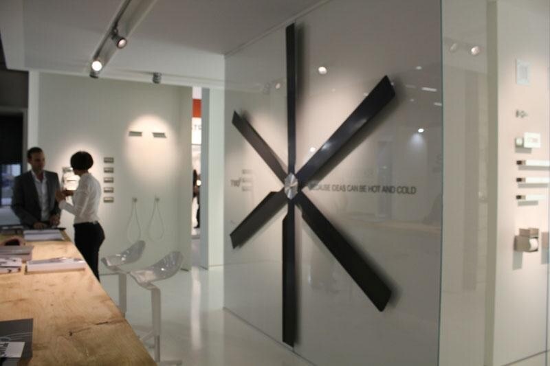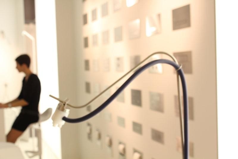 All’ingresso dello stand, montato a parete, anziché a soffitto, luogo per cui nasce, troviamo Two. Un ventilatore per grandi spazi o agitatore d’aria, come è stato chiamato per sottolineare il basso impatto sull’ambiente di questo elemento. Invece di voler creare qualcosa che in natura esiste già, il vento, Two è un coadiuvante nel raffreddamento-riscaldamento. Smuovendo l’aria esistente con le sei pale in carbonio (leggere per definizione: l’oggetto pesa 9 chili), ottimizza la climatizzazione con consumi bassissimi (9 Watt alla massima velocità).