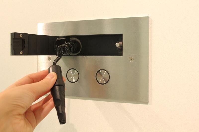 6-7. Hydro-plate, la placca per cassetta WC completa di idroscopino a scomparsa.