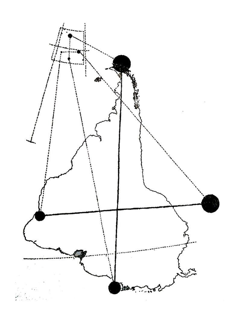 Quest’esigenza nasce dall’inibizione propria del continente americano a produrre una cultura autonoma a causa della mancanza di un segno di fondazione - come lo sbarco di Enea sulle coste romane. Appaiono carte geografiche o astrali che sovvertono qualsiasi convenzione cartografica: vi è l’inversione a 180° della mappa del continente americano (tesi del “nord proprio”) e la sovrapposizione della Cruz del Sur sulla figura del continente.