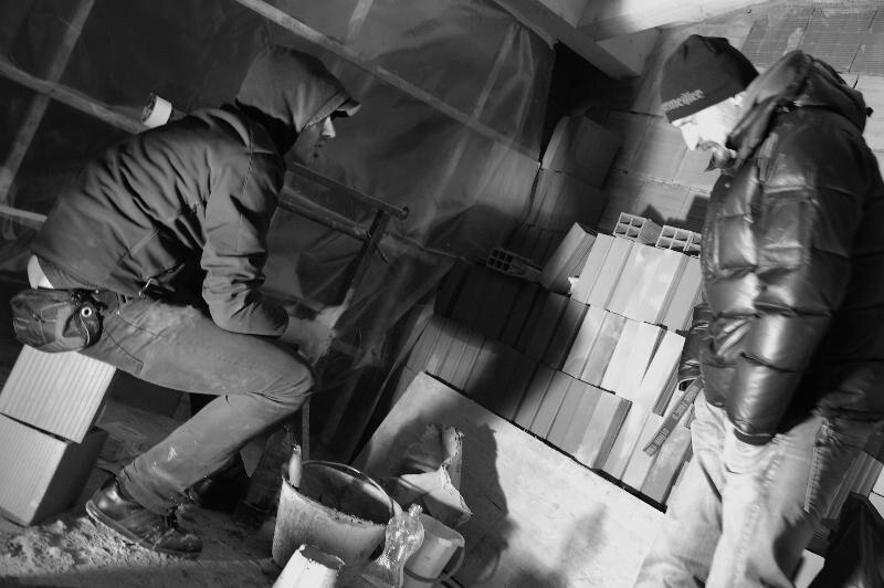 L.B.: Non potevo trascurare le caratteristiche del luogo dove si andava ad allestire la mostra. Ho pensato che un cantiere è qualcosa che cambia continuamente. Il giorno prima ci sono solo dei pilastri. Quello dopo trovi dei muri che delimitano un bagno, o una futura cucina, per non parlare di tutto il materiale edile e delle attrezzature.