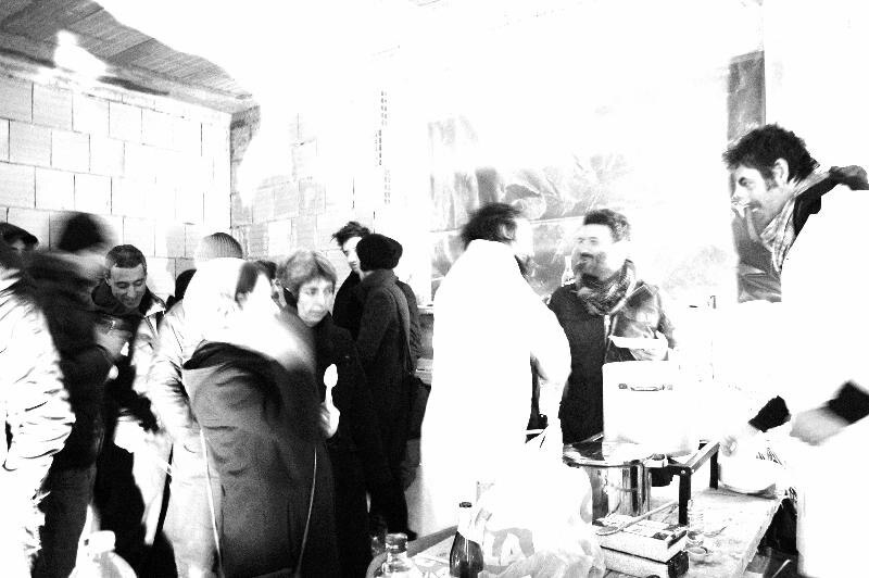 L.B.: Trattandosi di un cantiere non potevo invitare chiunque, nonostante avessi sospeso i lavori edili. Mi sono affidato al passaparola, non ho fatto nessun tipo di campagna stampa attraverso i soliti canali. Nonostante questo, paradossalmente, il portale Exibart senza che io li avessi informati è uscito con una speednews inviata a migliaia di persone. Tra giovedi e domenica sera sono venuti tantissimi artisti e amici e ci siamo trovati venerdì sera in circa 150 persone ad assaggiare il risotto dei Masbedo.