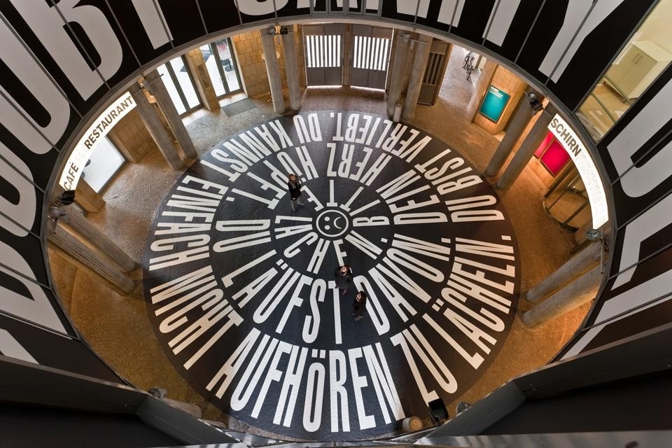 La sua tipografia si basa esclusivamente sul carattere tipografico Futura disegnato da Paul Renner nel 1927 sotto l'influsso del Bauhaus. Un carattere che divenne immediatamente molto popolare nel ventesimo secolo ed è stato largamente usato nella pubblicità. Il suo uso per grandi, ostentati lettering trasforma le lettere in immagini e rende il linguaggio percepibile in maniera spaziale. "È una sfida e un piacere fare di ogni installazione l'affermazione più forte di un particolare spazio", dice l'artista.