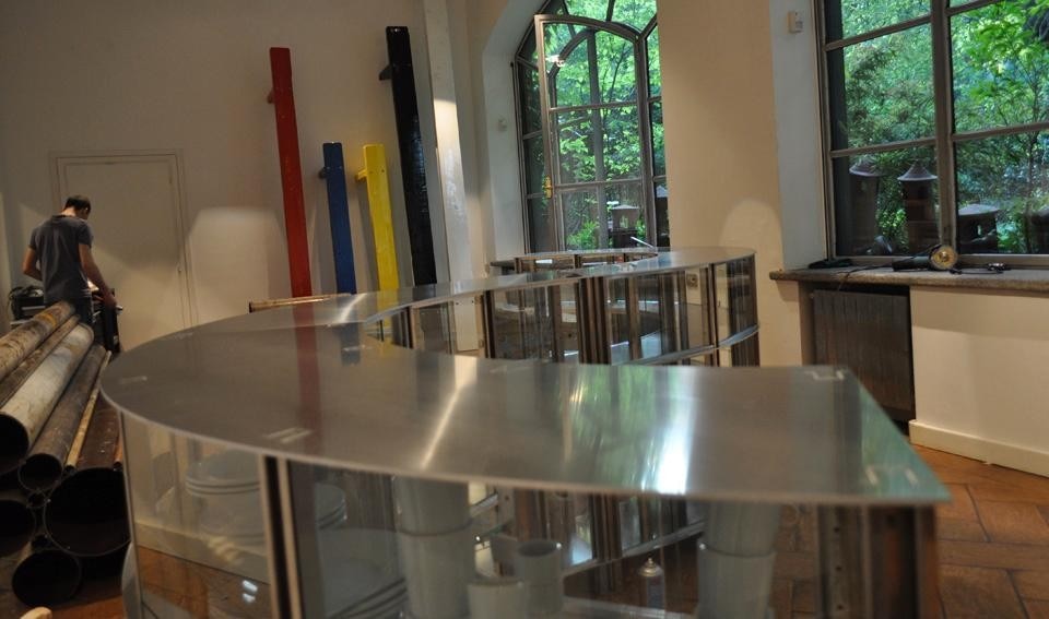 Focalizzato come sempre sui materiali e sul riuso di vecchi oggetti industriali l'olandese Piet Hein Eek confessa di essere arrivato al Salone con un po' di affanno, cercando di sfruttare il poco tempo lasciato dal progetto che l'ha impegnato per l'intero anno, da febbraio a ottobre, e cioè la ristrutturazione del suo studio di Eindhoven, un'enorme capannone industriale un tempo della Philips. "Tutta la mia energia l'ho messa in questo progetto e molte delle cose che presento qui sono più o meno strettamente collegate. Sono fatte di materiali di scarto e oggetti che ho trovato lì", ci racconta Piet. Come, per esempio, una serie di enormi tubature in ferro a soffitto trasformate in divano e poltrona ("Abbiamo riempito 10 container di tubi e ne abbiamo ancora cinque" precisa il designer olandese).