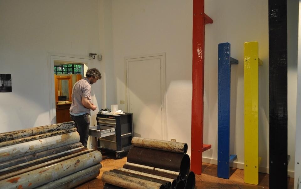 Alla fine, dunque, la causa che gli ha impedito di preparare dei nuovi oggetti per il Salone ha finito per essere anche la principale fonte di ispirazione. "Prima di trasferirmi avevo anche acquistato un enorme stock di legname", racconta ancora. Che qui vediamo trasformato in panchina e poltrona.