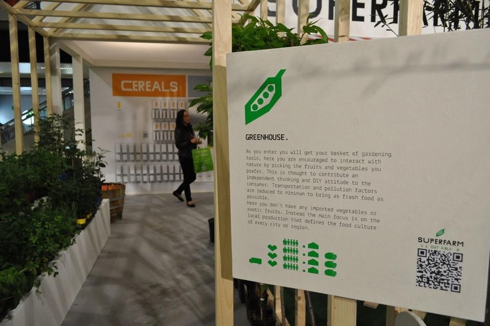 E poiché, entro il 2050 l'80% delle persone vivrà nei grandi centri metropolitani, l'agricoltura urbana potrebbe essere la risposta e offrire un nuovo modello di vita. Con Superfarm, un'installazione iconica e ironica, i tre designer illustrano un nuovo modo di coltivare e consumare il cibo in città: tra serre e cortili, mulini e supermercati. ES