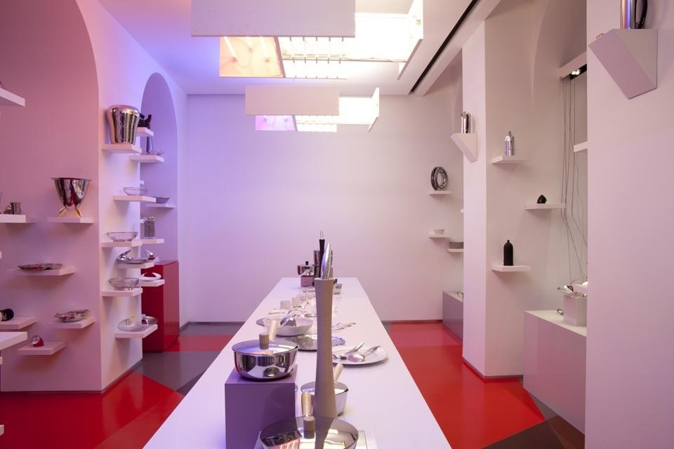 Un set, un museo, un negozio, una Wunderkammer, un’esperienza completa del mondo Alessi. Il negozio è stato progettato sovvertendo le convenzioni, facendo delle riflessioni, reinterpretando in maniera del tutto personale gli elementi di design, usando il placing e il patching