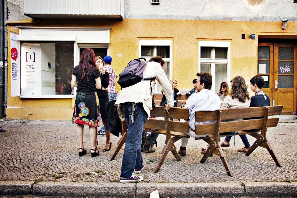 Da quella in doghe di legno da giardino fino al modello molto noto in ghisa decorata, la panchina fa parte di un mondo di oggetti ordinari, diffusissimi, indispensabili, ma che non si evolvono mai, statici... Qui, grazie a una piccola invenzione, nel disegno e nel congegno, è la condizione per un'isola di conversazione nello spazio urbano, uno spazio dinamico per nuove relazioni sociali. Per entrare nel giro, o per uscirne.