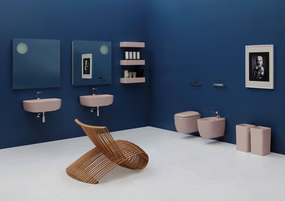 Nelle finiture mat vengono invece proposte varie tonalità di grigio, dal chiaro allo scuro ma sempre con un aspetto molto caldo. I nuovi colori oltre che nella ceramica vengono proposti nelle vasche da bagno realizzate in Pietraluce. Queste nuove tonalità riattualizzano molti prodotti Flaminia ormai diventati dei classici nel mondo dei sanitari. Nell'ottica di una sempre rinnovata volontà di confrontarsi con progettisti diversi nasce una nuova interessante collaborazione, quella con Paola Navone, personaggio di grande spicco nel design contemporaneo.