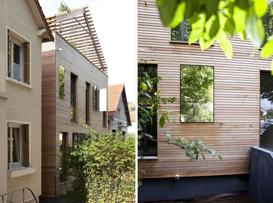 La soluzione è stata quella di abitare questo spazio, lasciandolo a cielo aperto e trattandolo in terrazza vegetalizzata, intima e soleggiata. La scelta delle piante proposte dalla paesaggista, graminacee e piante rampicanti fruttifere (Kiwi, zucche, vigneto), permetterà ai proprietari di beneficiare di un orto, un "orto sospeso".