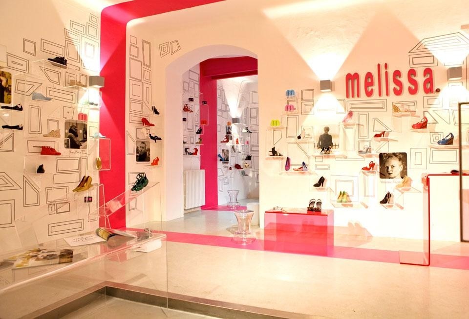 Il nuovo flagship store sarà caratterizzato da un ambiente particolare e mutante, che vede la scarpa-scultura come principale protagonista. 80 mq con percorsi di nastri in metacrilato, salite e discese, tratti irregolari che creano cornici intorno alle creazioni Melissa mischiandosi con i ritratti "invecchiati" degli stilisti e designer con cui il brand ha collaborato. Un allestimento che incuriosisce ed invita i clienti Melissa ha scoprire le novità attraverso nuove strade, percorsi grafici in evoluzione. Titolo dell'allestimento creato dall'architetto brasiliano Virginia Fabri è A tape's course at an exhibition art.