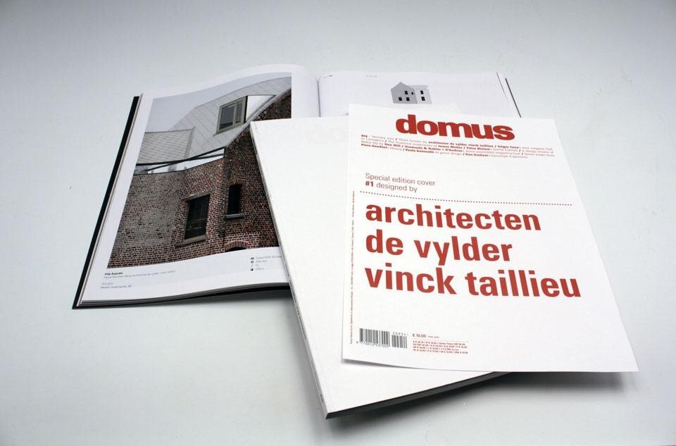 Jan De Vylder, Inge Vinck e Jo Taillieu usano lo spazio della copertina di Domus per offrire un campo d'azione sgombro da immagini preconcette e aperto a tutti. Omaggio al foglio bianco, allo spazio vuoto e al silenzio, trasferisce alla rivista le sembianze di un taccuino per appunti.