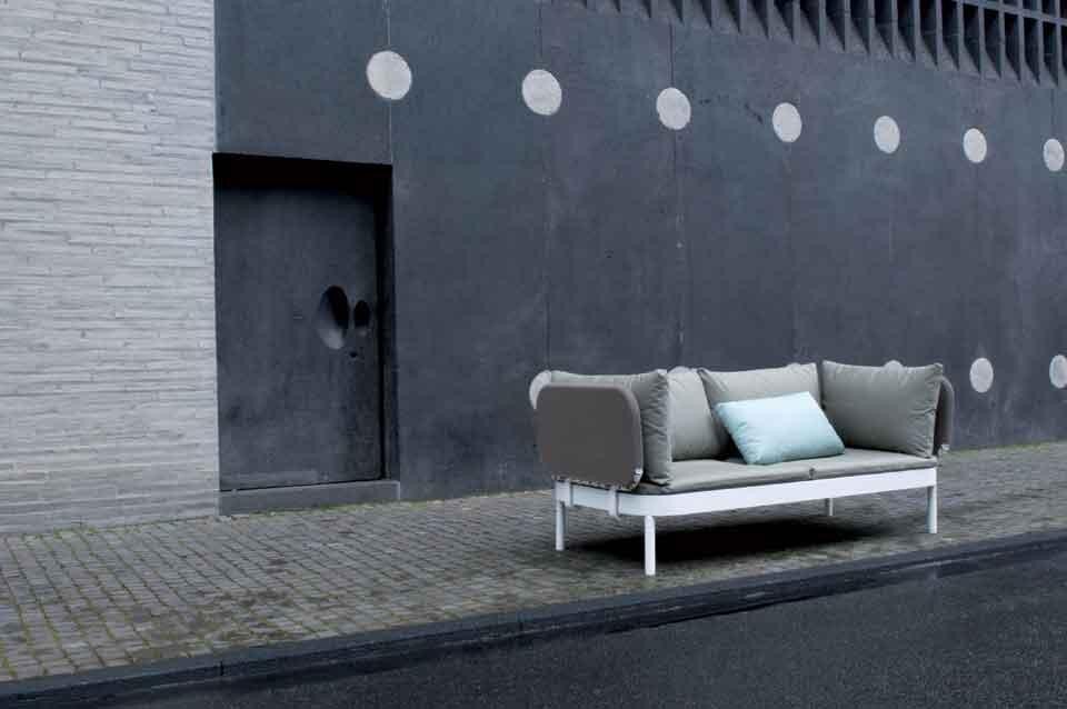 L'ampia collezione prodotta da Gandia Blasco comprende diversi elementi: letto, chaise longue, poltrona, sofa modulari, poufs, tavoli alti e bassi, sgabello e panchina.