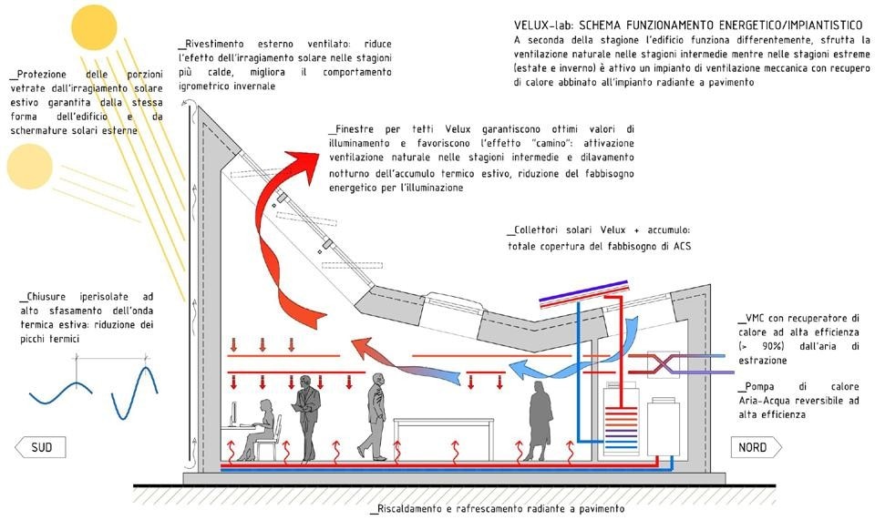 L'edificio sarà destinato ad attività di ricerca dei dipartimenti BEST ed Energia del Politecnico di Milano e sarà utilizzato come laboratorio per testare nuove tecnologie e materiali per l'efficienza energetica in edilizia e per lo studio della luce e ventilazione naturale. Concepito come un modulo sperimentale in cui la stessa forma consente una risposta "attiva" al mutare delle condizioni climatiche esterne, VELUXlab presenta ottimi livelli di confort interno e di efficienza energetica.