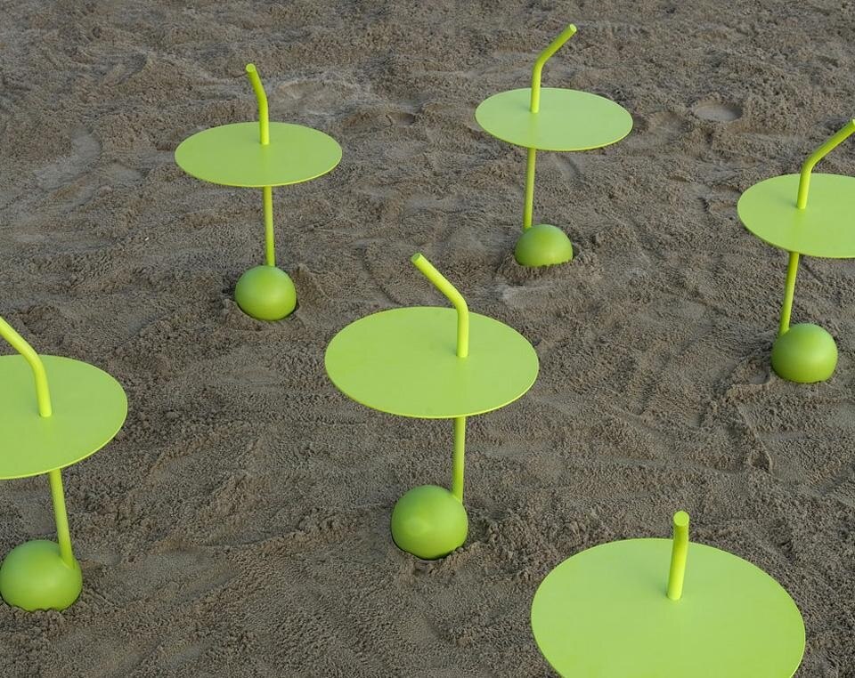Il progettista è sovente colui che "guarda le cose con occhi diversi". Miki Astori affronta in questa ottica il progetto del tavolino da esterno Peanut trasformando le necessità "fisiologiche" dell'arredo outdoor in punti di forza. Nasce così la base fortemente zavorrata a forma di "panettoncino", omaggio a quel "dissuasore della sosta" ideato da Enzo Mari e che ormai caratterizza le vie milanesi. In esso si inserisce, come avviene per la segnaletica stradale, un tubo verniciato nel più classico "verde inglese". Peanut, nel suo insieme, ha la forza degli oggetti "fuori dalla moda".
