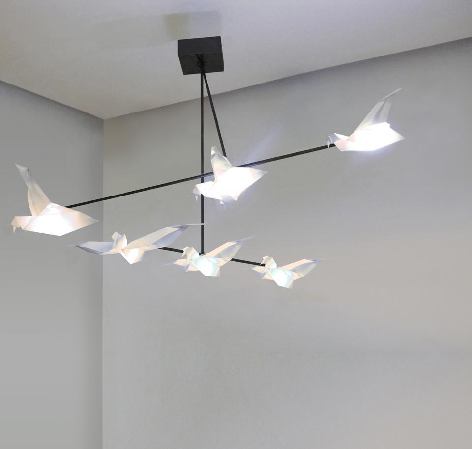 La lampada Migration prende ispirazione dalla migrazione degli uccelli, proponendo la classica forma di volatile realizzata con l'arte dell'origami, che diffonde la luce. La lampada è realizzata in carta di poliestere resistente al calore, di solito utilizzata per i filtri dei motori.