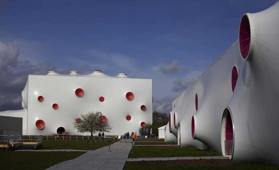 Le aperture nei 18.000 mq di superficie della membrana, realizzata in PVC senza ftalati, hanno funzione di bocchette di ventilazione e, al piano terra, di porte d'ingresso. L'aspetto fresco e leggero degli edifici aumenta il carattere festoso e celebrativo dell'evento olimpico. Sapendo che gli edifici sarebbero stati smantellati dopo l'evento, un obiettivo ulteriore è stato quello di creare un progetto fuori dal comune, in modo che fosse ricordato dai visitatori e dalla comunità locale.