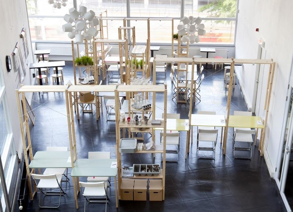Così nel ristorante temporaneo i clienti riempiono la scheda delle ordinazioni usando le solite matite e il pasto viene servito su vassoi che poi vengono portati alla "postazione" scelta. Ogni cliente si può inventare la decorazione del tavolo come più gli aggrada, attingendo a una varietà di carte e tessuti da misurare, ritagliare, e posizionare.