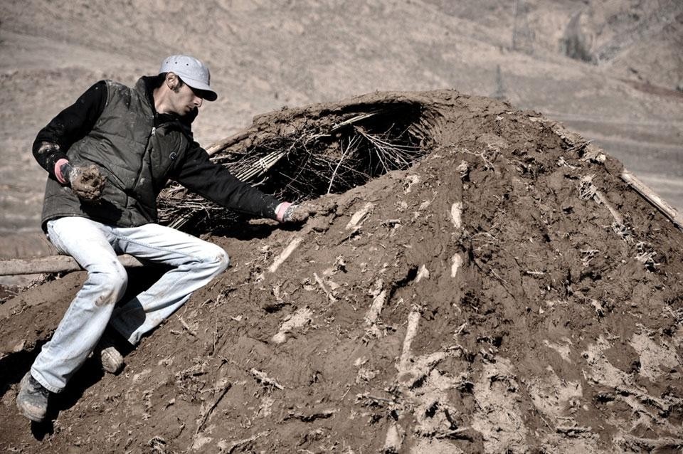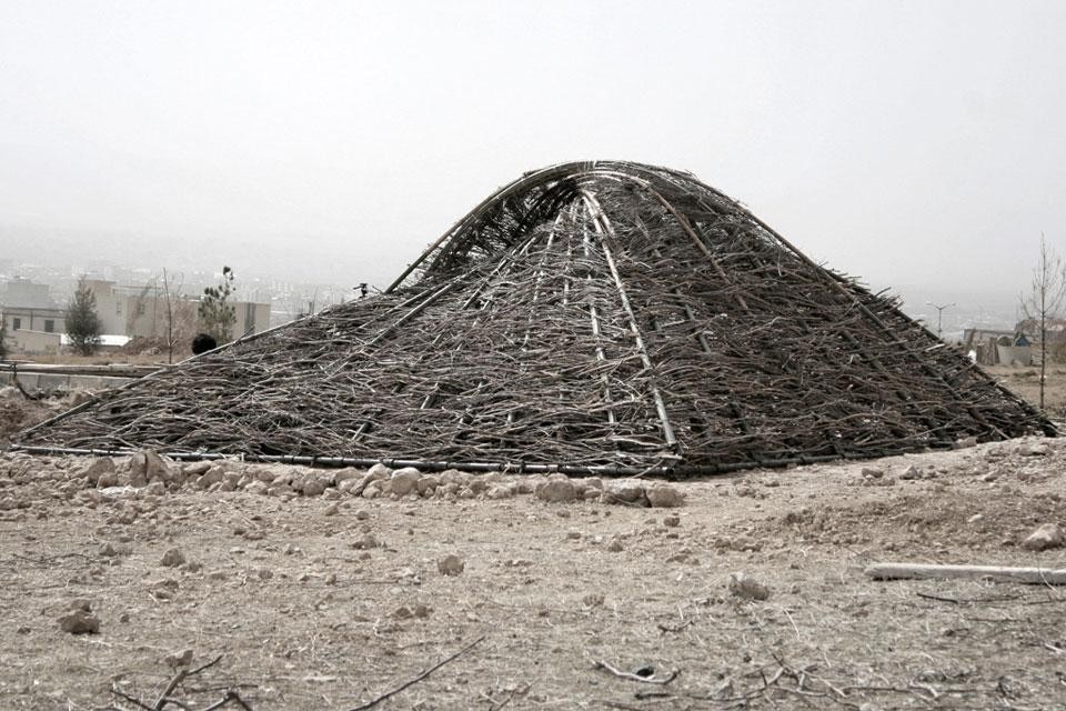 Il prototipo della dimora è costituito da una struttura di bambù creata incurvando e legando tra loro i rami degli alberi, e poi stabilizzata e protetta dai muri di fango. I rami degli alberi, precedentemente rimossi per far spazio a un progetto viario, sono stati messi a disposizione dal sindaco di Kermanshah.