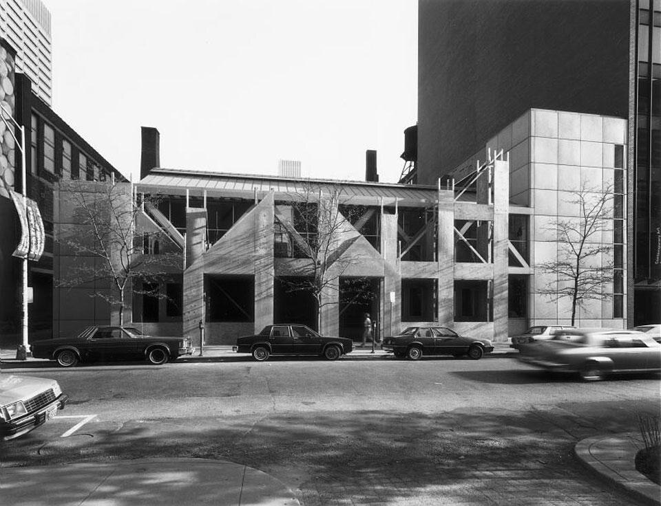 "Gli edifici del nuovo centro (arch. Peter Rose con Weol Argun) occupano in piena città una grande area libera lungo il boulevard del parco Rochester. La presenza di questo parco offriva l'occasione straordinaria di creare un giardino urbano a Montreal. […] Il Museo di Architettura aveva bisogno di un "parco-scultura" che fosse una sua propaggine organica, che fosse costantemente accessibile al pubblico, un luogo in cui riemergessero le più profonde stratificazioni della città, le divisioni catastali, un precedente disegno urbanistico, un antico frutteto. Dal CCA e dal Ministero della Cultura del Quebec è stato bandito un concorso, il cui vincitore — l'artista, storico e architetto Melvin Charney, uomo dotato di lauree quanto di genio, già protagonista del Padiglione Canadese alla Biennale di Venezia del 1986 — ha saputo cogliere appieno l'eccezionalità e lo spirito della situazione. Il suo progetto, ufficialmente approvato nel settembre 1987, prevede una notevole ed unica compagine di scultura urbana la cui sistemazione risponde perfettamente sia alle esigenze che alle possibilità del luogo."