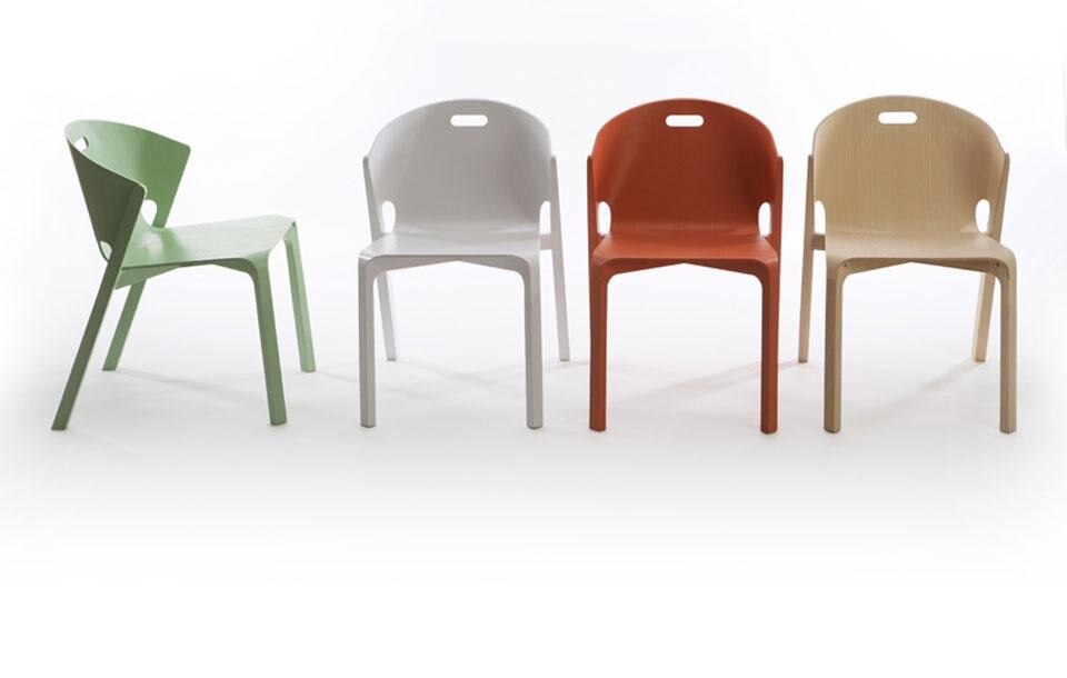 Le asticelle in legno e i fogli d'acciaio, dopo essere stati tagliati a laser per una maggiore precisione d'insieme delle geometrie, vengono uniti mantenendo una certa tensione, sia visiva che strutturale. L'acciaio garantisce, infatti, un'ottima resistenza riducendo il peso dei tavoli e delle sedute. Il sistema è stato studiato anche per ridurre drasticamente i costi di spedizione in un'ottica generale di risparmio energetico. La sedia Pelt, impilabile, è realizzata interamente in frassino (massiccio e laminato) è composta da due parti fondamentali: le gambe in legno solido e il foglio che costituisce la scocca.