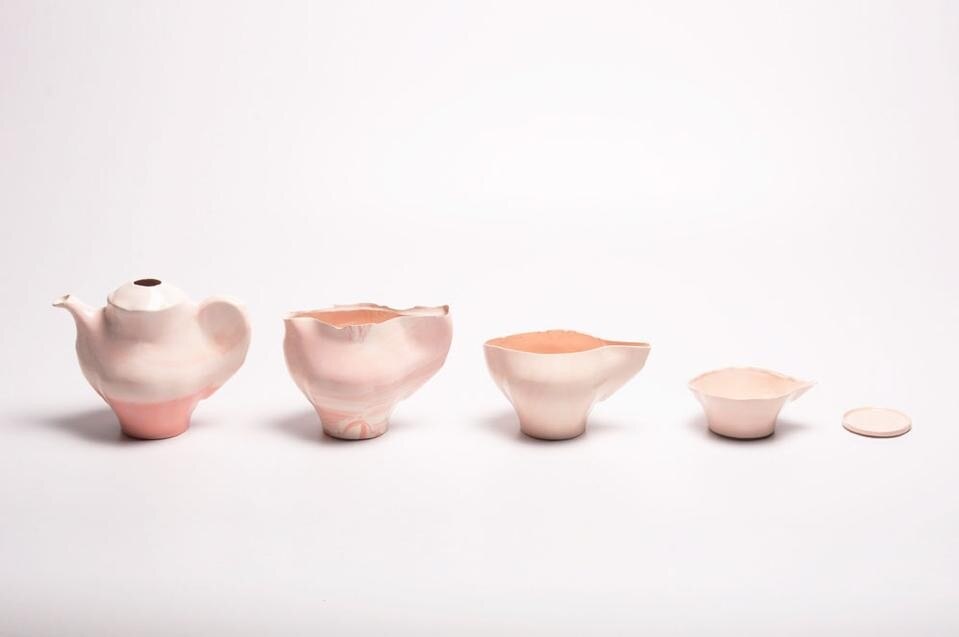 Il Teapot'set è un unico stampo di teiera da cui si deriva l'intero servizio da tè. Utilizzando una quantità fissa di argilla liquida, la produzione di ogni oggetto lascia meno materiale per quello successivo. La colorazione delle argille traduce visivamente questo processo, mostrando nella prima colata la miscelazione iniziale di due colori differenti, che poi alla fine si fondono in un unico colore, appena l'argilla viene versata all'interno e al di fuori dallo stampo.