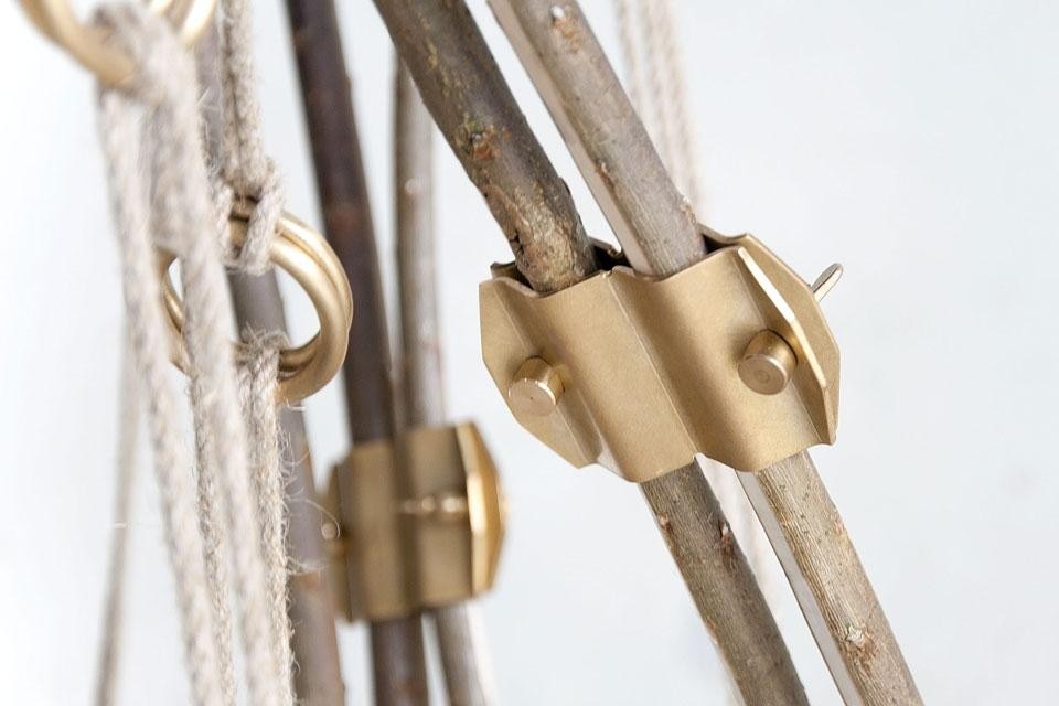 Concepito come un kit di parti, il sistema costruttivo consiste in staffe di ottone e corde che generano la tensione necessaria a collegare e manipolare i pali di legno appena tagliato. Queste componenti possono essere utilizzate per tutta una serie di oggetti e strutture, da attaccapanni a supporti per tavoli, fino a elementi divisori e architetture di piccola scala.