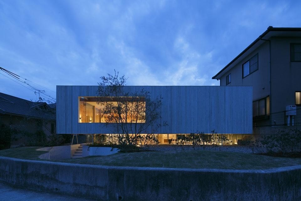 Il punto di partenza del progetto è l'apertura della casa verso nord e lo sviluppo del piano terra a un livello superiore di un metro rispetto a quello della strada. "È come se l'ambiente naturale del sito e l'architettura coesistessero, diventando un unico elemento", afferma l'architetto Keisuke Maeda. "Questa volta", continua, "siamo arrivati a una forma vivente che reagisce all'ambiente esterno, al terreno, alle recinzioni circostanti, ai muri delle case confinanti e alle residenze che si trovano lungo la pendenza e ben oltre le montagne".