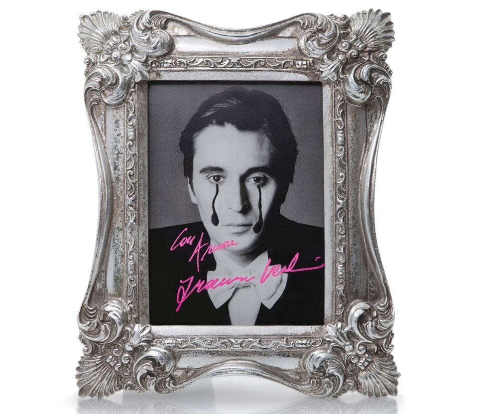 L'opera dal titolo Con Amore, Francesco Vezzoli (Francesco by Francesco) è il primo multiplo realizzato dall'artista, un'edizione di 399 esemplari, numerati e firmati, per 399 euro l'uno, disponibile in esclusiva su yoox.com. I ricavati della vendita dei multipli d'autore, ideati dall'artista per la causa, verranno interamente destinati al FAI per sostenere il recupero di un monumento di altissimo valore civico e culturale, il Palazzo Comunale di Finale Emilia, epicentro della prima scossa del terremoto, un contributo concreto per il territorio emiliano, dove YOOX Group ha ad oggi la sua sede principale. La scelta d'intervento del FAI - frutto di un'intensa collaborazione con la Direzione Regionale per i Beni Culturali e Paesaggistici dell'Emilia Romagna – è stata dettata dal valore simbolico dell'edificio, che rappresenta l'anima, il senso di comunità e di aggregazione della città. Famoso per le lacrime ossessivamente ricamate a mano sui volti delle dive di ieri e di oggi, in questa edizione Vezzoli riga di lacrime nere il suo stesso volto, ritratto in passato dal grande fotografo Francesco Scavullo. Il gesto manuale dei suoi ricami a piccolo punto diventa per la prima volta seriale, cucito a macchina, e si ripete su 399 cartoline, con dedica dell'autore, in glitter fuchsia, CON Con Amore, Francesco Vezzoli (Francesco by Francesco). La seducente immagine oscilla tra il languore glamour della foto autografata di un divo d'antan e la nostalgia domestica della cartoline ricamate, che nonne e zie incorniciavano e conservavano come preziose reliquie. Un riferimento, quest'ultimo, che Francesco Vezzoli cita come precisa fonte d'ispirazione per questo progetto: "Nella vita, e nel mio lavoro, non credo nelle scelte elitarie: devono essere o realmente esclusive o realmente pubbliche e popolari. Quindi ho pensato ad un progetto con una tiratura molto ampia e ad un oggetto d'uso comune del passato come le cartoline postali di una volta che ritraevano ballerine e altri soggetti ricamati".