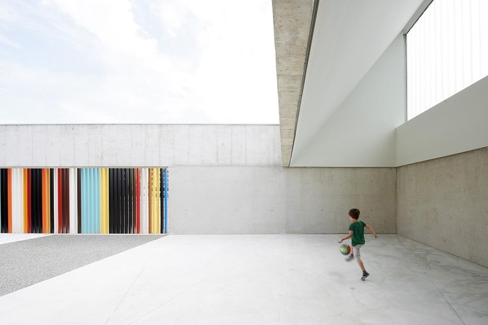 La forte geometria dei lucernari, che compaiono in relazione alle attività che si svolgono al di sotto, costituisce una delle caratteristiche maggiori del progetto. Il progetto si basa su una struttura modulare di cemento armato che qualifica e definisce sia lo spazio interno che il modo in cui la luce lo attraversa. Un reticolo colorato avvolge l'edificio e le sue aree gioco, definendo e arricchendo il rapporto tra la strada e gli spazi interni.