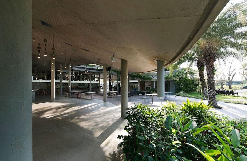 In questo complesso progettato da Kok-Meng Tan e Satoko Saeki di KUU e da Ling Hao, il visitatore percorrono una serie di coperture verdi, spazi all'ombra arieggiati dalle pale attaccate al soffitto. I padiglioni sono aperti verso il giardino, lasciando così che la luce e la ventilazione naturali si diffondano nello spazio. L'illuminazione zenitale penetra casualmente dall'alto attraverso pozzi di luce. Gli ospiti si dispongono attorno a grandi tavoli, che sono circondati da piante e fiori ed esposti alla pioggia e al cielo. L'anello dedicato alle bevande è un elemento interno rallegrato da bougainvillea ricadenti.