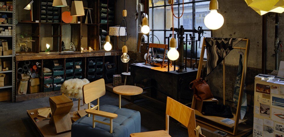Per raggiungere "Retrobottega" si entra nel negozio vero e proprio, imboccando lo stretto corridoio, a lato del vecchio bancone in legno, circondati da alti scaffali dove sono stipate scatoline, viti e bulloni, lunghe barre di ferro, chiavi di ogni misura e ogni genere di piccoli oggetti in metallo; in contrasto con essi, su espositori e lunghe pedane di cartone, trovano luogo i piccoli e interessanti progetti di design radunati da tutte le parti del mondo da questo giovane collettivo. Tanti piccoli oggetti di uso quotidiano, dai tavoli alle sedie dalle lampade alle mangiatoie per uccelli, dai piatti ai vasi … frutto della creatività di 29 giovani designer provenienti da Belgio, Corea, Germania, Giappone, Grecia, Italia, Olanda, Spagna, UK e Ungheria. Il dialogo che l’allestimento, tutto in cartone, di SFUSO è riuscito a creare tra questo luogo del fare, che odora di legno e ferro, e gli oggetti presentati, nati tutti in laboratori simili a questo, ha permesso all’intera iniziativa di esemplificare i nuovi contenuti della produzione. Il risultato è una contaminazione tra momenti diversi della storia, quella di ieri e quella contemporanea.