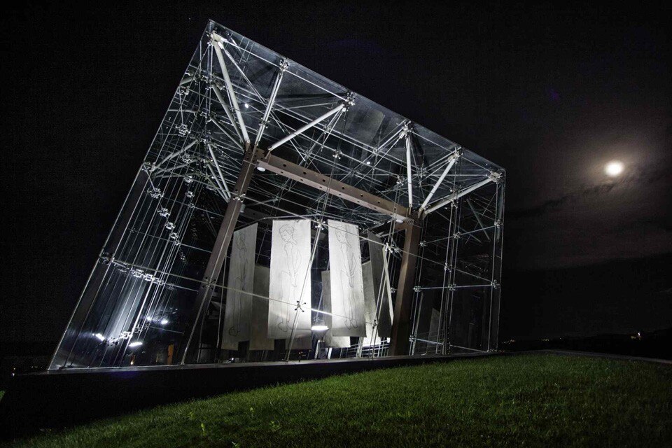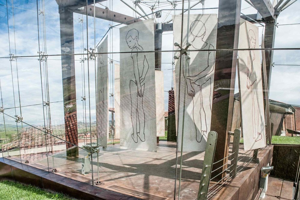 L’installazione si avvale di una sonorizzazione appositamente realizzata dal noto compositore e direttore d’orchestra Aldo Brizzi. La mostra prosegue all’interno del Cubo di vetro, simbolo della cantina di Bricco Rocche, dove si trovano i 10 grandi affreschi che compongono l’opera Ognjen raffigurante un bambino che voltandosi su stesso interagisce con lo sguardo dello spettatore. Nello spazio sottostante, nella cantina d’affinamento del Barolo, il cabinet des dessins mostra gli studi e i lavori preparatori che hanno dato origine alla mostra.