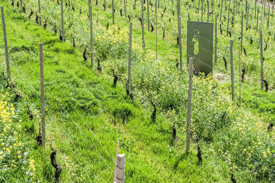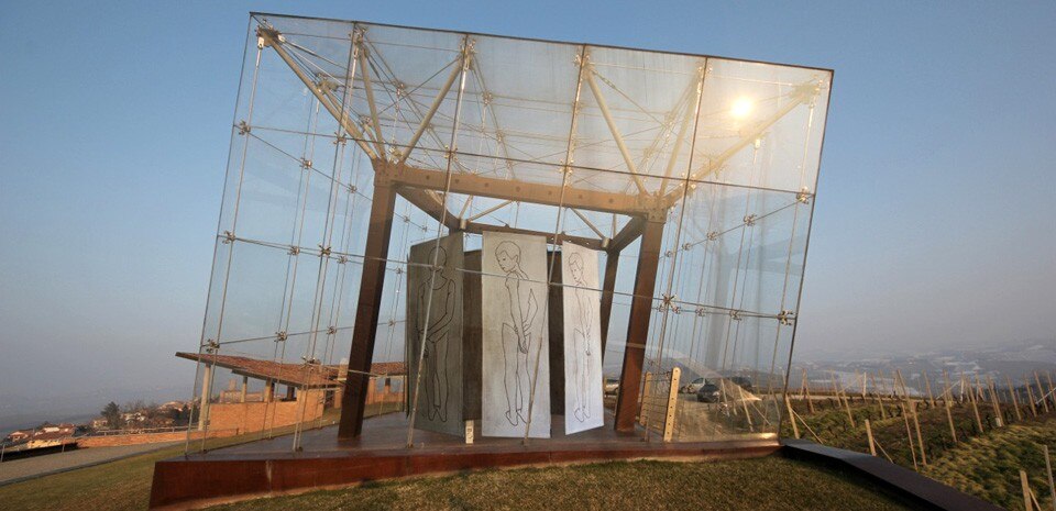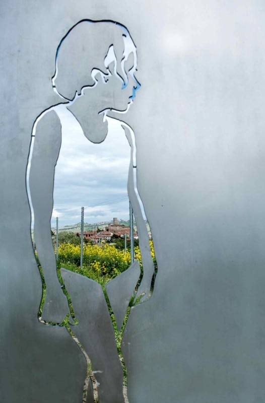 Quattro imponenti lastre in ferro alte 2 metri, posizionate nel vigneto in corrispondenza dei punti cardinali, compongono l’opera di Berruti. Il titolo è una frase tratta da Il Partigiano Johnny di Beppe Fenoglio, scrittore simbolo delle Langhe, che interpreta la giocosità dell’installazione che, con un escamotage percettivo, unisce cielo e terra. All’interno di ogni stele è ritagliata una figura infantile che dà la possibilità allo spettatore di immergersi, attraverso l’arte, nel panorama delle vigne circostanti.