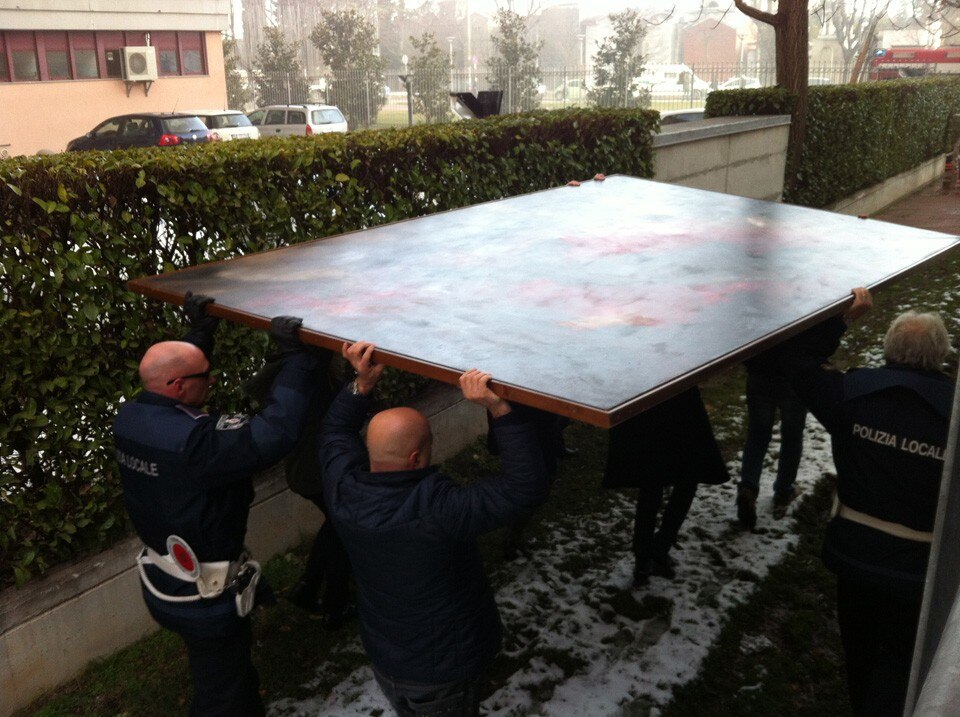 Nasce da questi presupposti il progetto espositivo “E subito riprende il viaggio… Opere dalle collezioni del MAGA dopo l’incendio”, curato da Emma Zanella e Giulia Formenti, con il quale oltre 140 opere del patrimonio museale salvate dal fuoco si muoveranno verso le sedi espositive della Triennale di Milano e della Reggia di Monza.