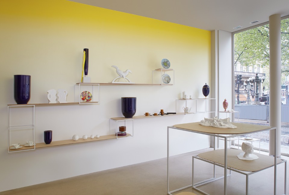 Lo studio franco-giapponese A+A Cooren Design Studio ha firmato gli interni della galleria principale alla Cité de la Céramique, a Sèvres. Il progetto di allestimento aveva come obiettivo quello di valorizzare i quattro secoli di tradizione manifatturiera, attraverso la selezione di 100 pezzi. Per incorniciare le opere è stato utilizzato uno sfondo giallo sulle pareti, sfumato in modo da ricordare i paesaggi asiatici al mattino. Sia la sfumatura leggera che le strutture sottilissime in legno contribuiscono a valorizzare la leggerezza e l’armonia delle sculture.