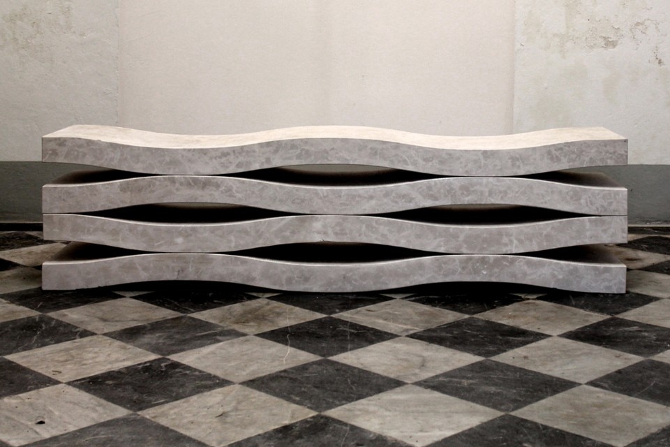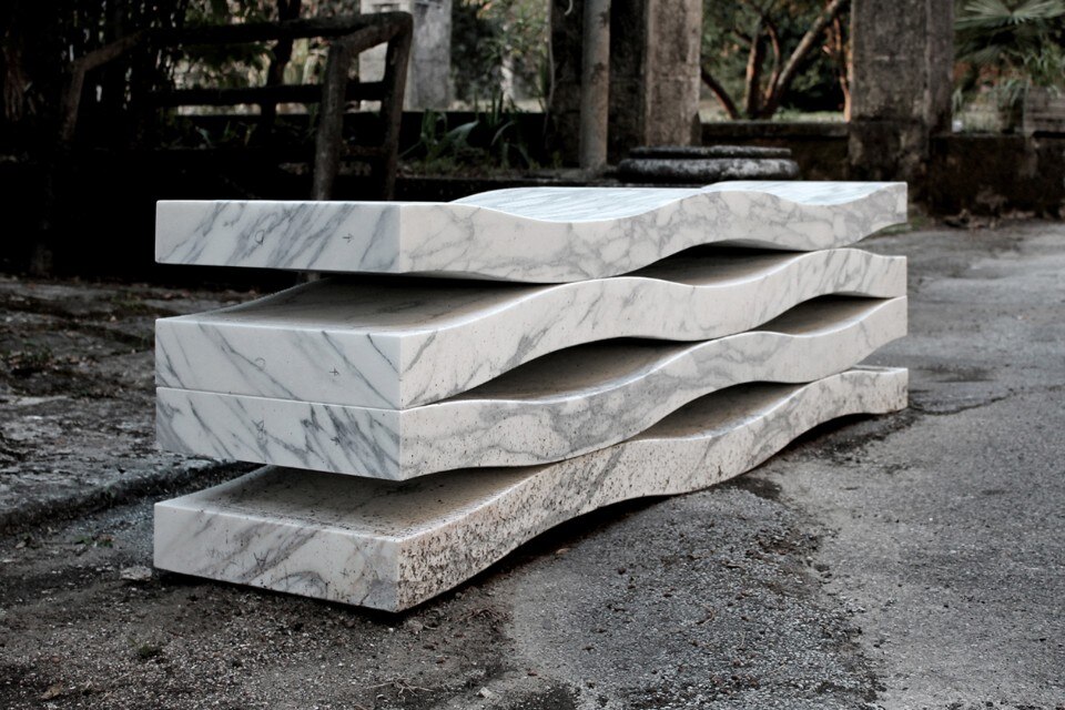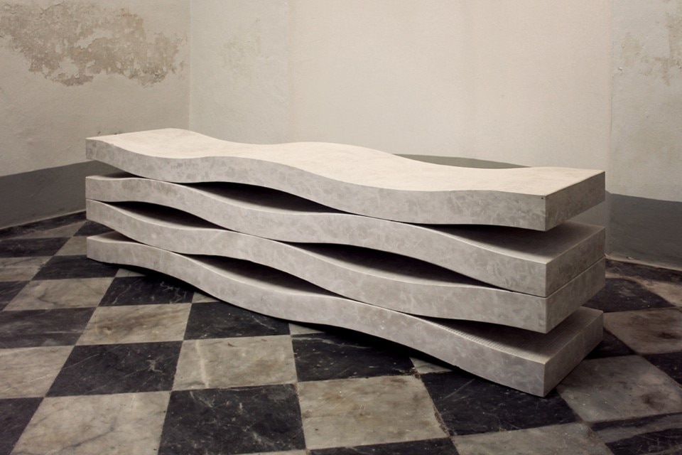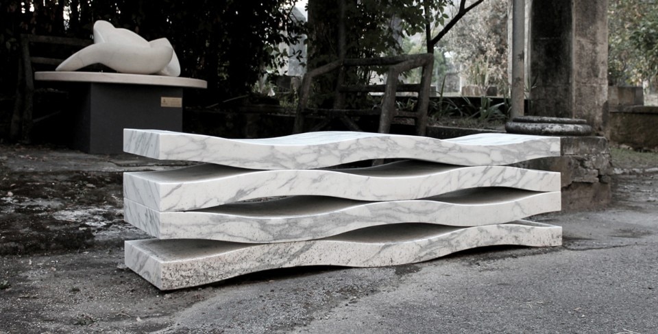 Onda, panchina di marmo progettata da Paolo Ulian e Moreno Ratti, 2013. Produzione UpGroup