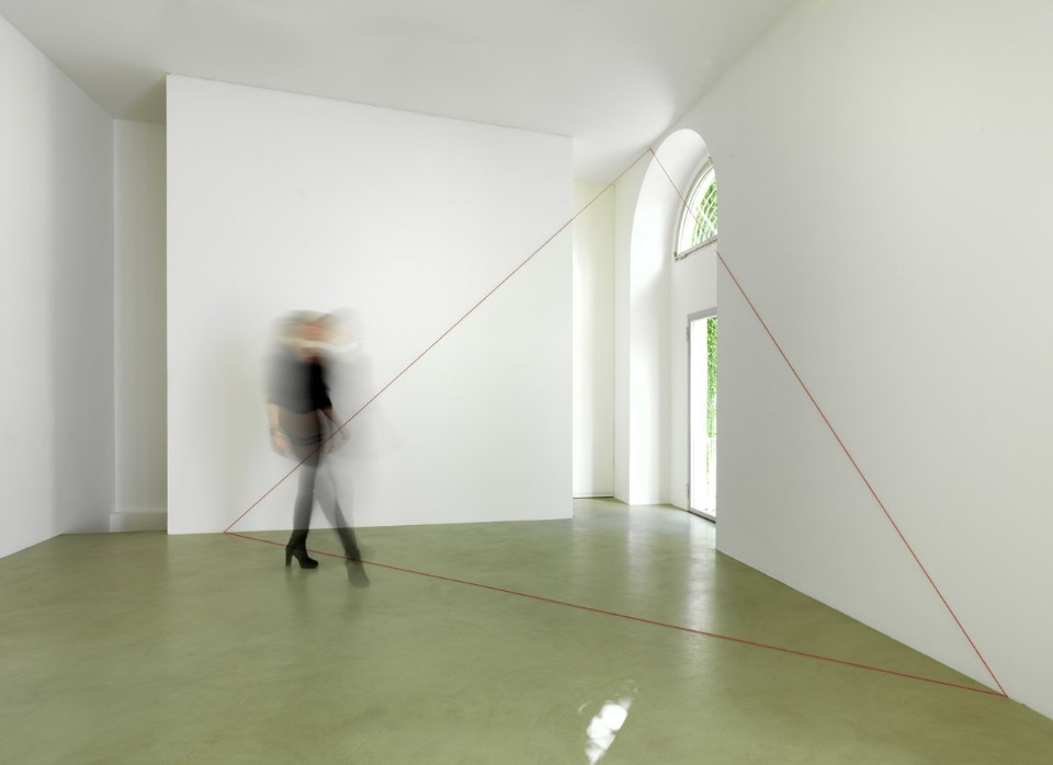 Fred Sandback, Untitled (Sculptural Study, Construction for Room with Three Entrances), ca. 1980/2011 Installazione, Pori Art Museum, Finland, 2011. Photo Pori Art Museum, Finland
