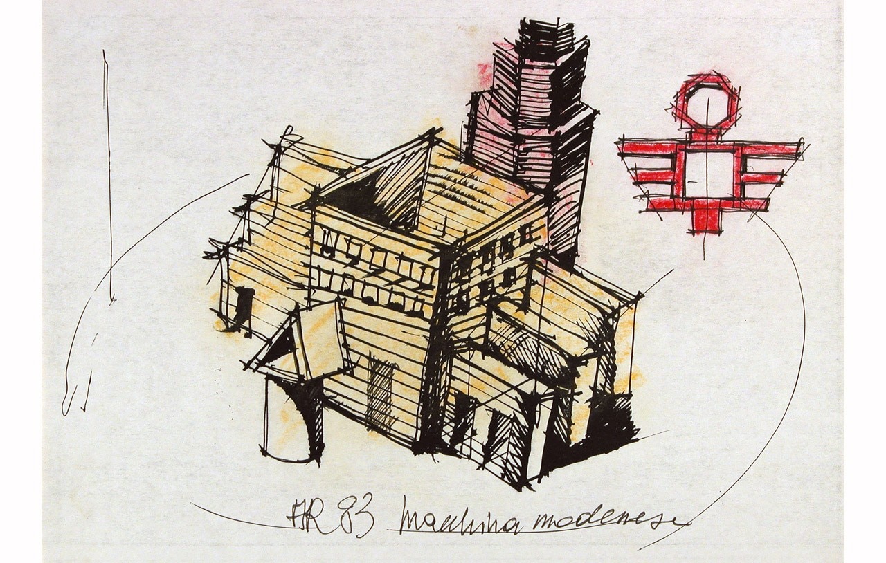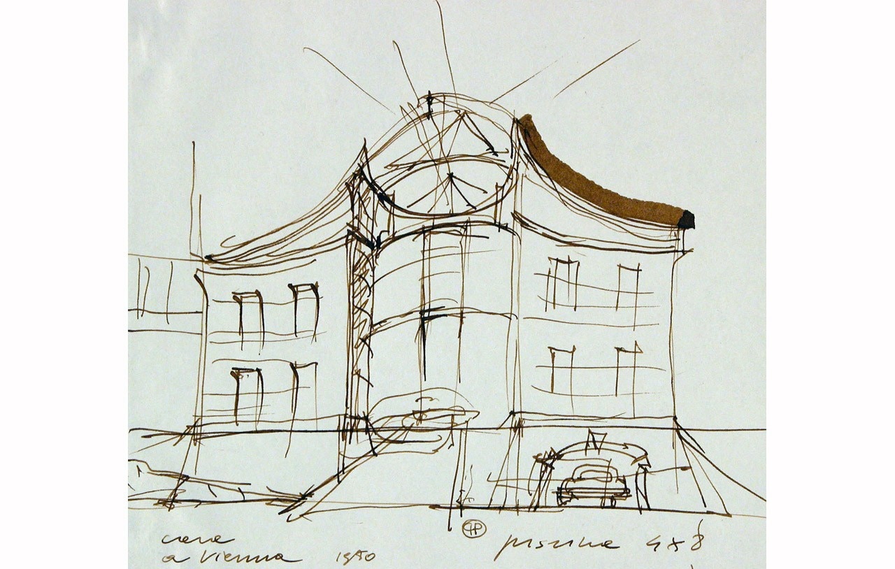 Paolo Portoghesi, Casa a Vienna, 1980, inchiostro su carta, Raccolta del disegno, Galleria civica di Modena, © Paolo Portoghesi