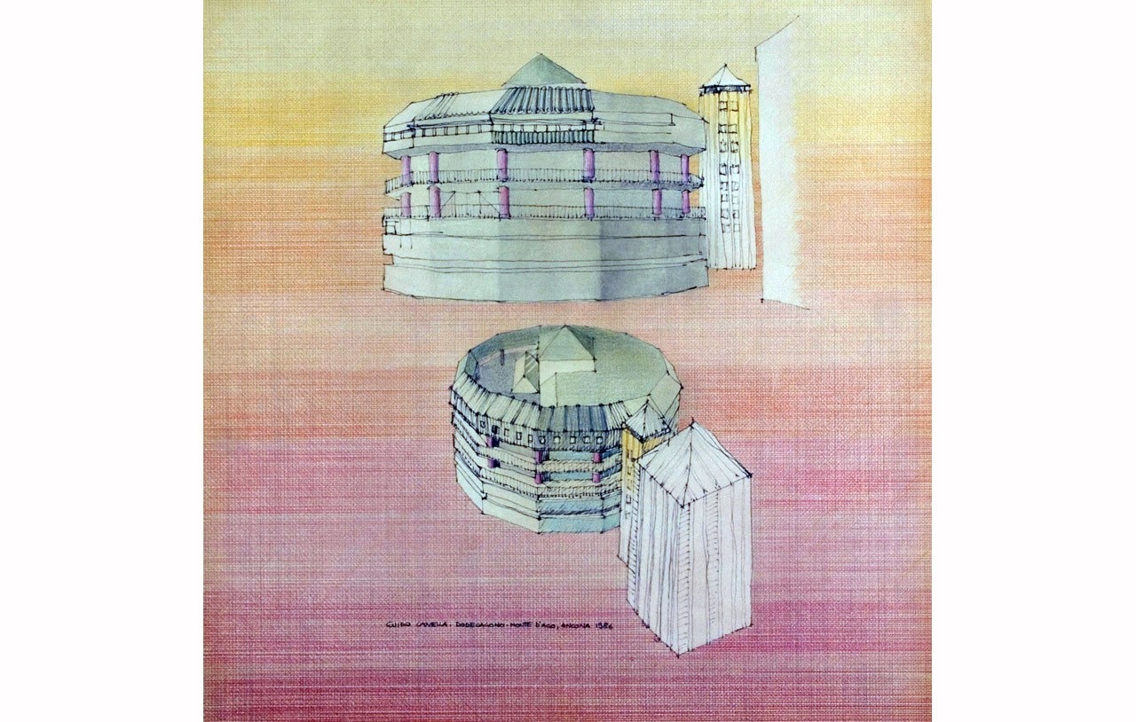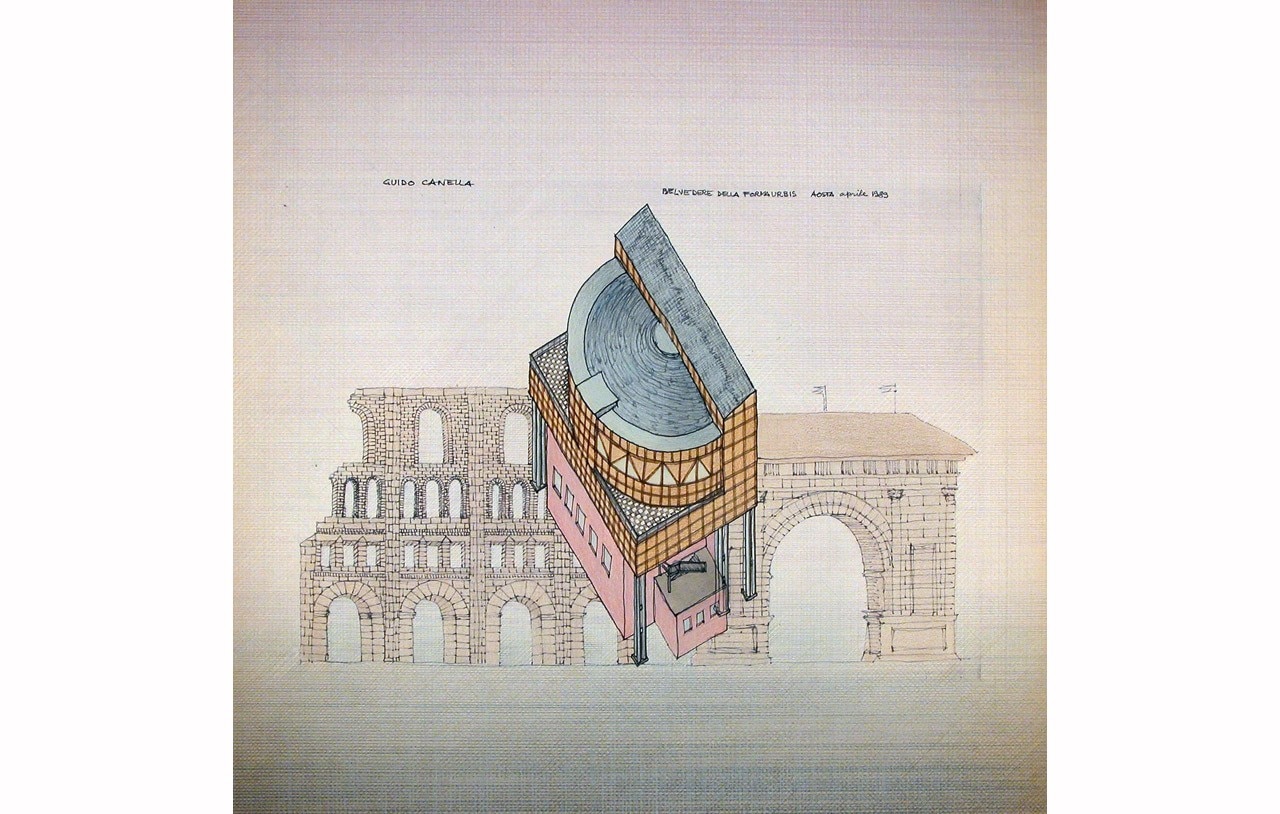 Guido Canella, Belvedere della Forma Urbis, 1969, matita, china e pastello su carta, Raccolta del disegno, Galleria civica di Modena, © Eredi Guido Canella