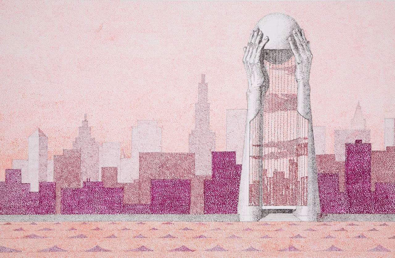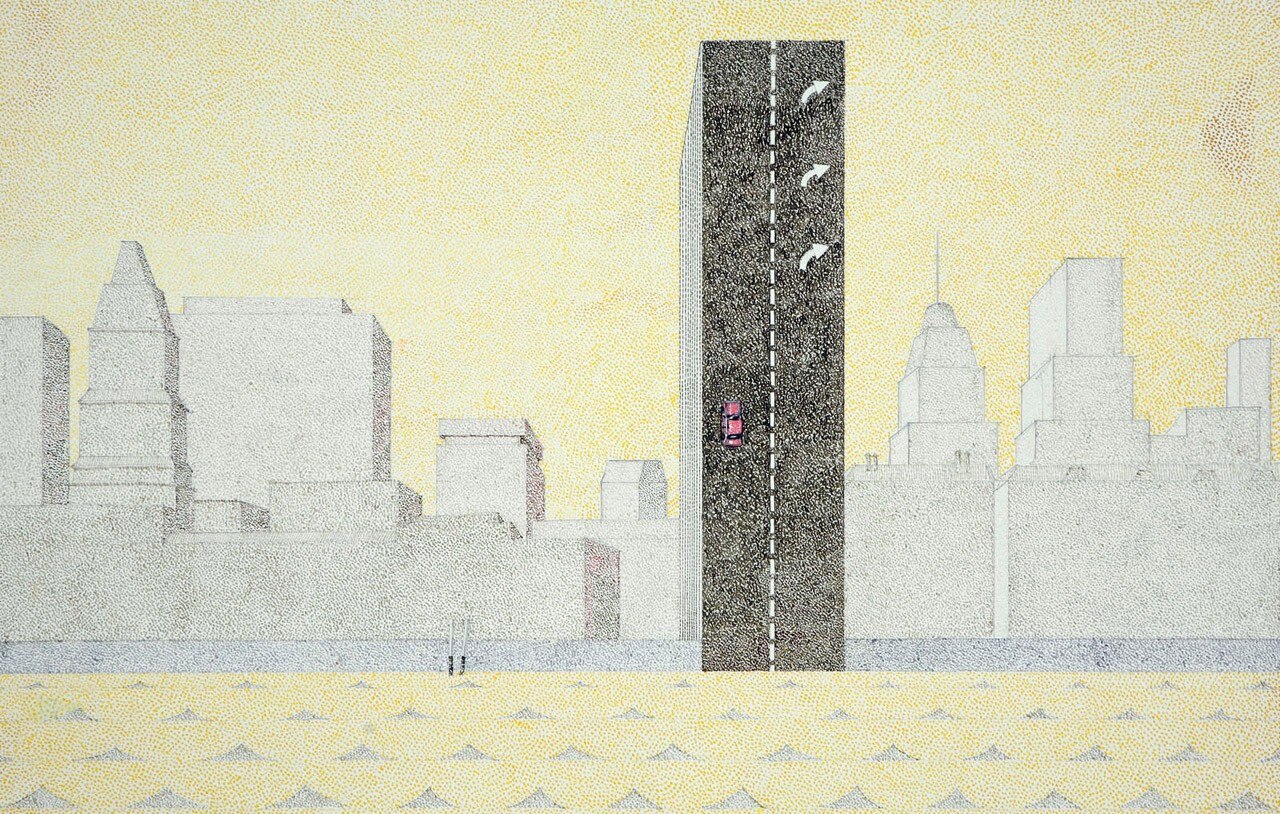 Ico Parisi, Grattacieli, 1986, inchiostri colorati su cartoncino, Fondo Ico Parisi, Galleria civica di Modena