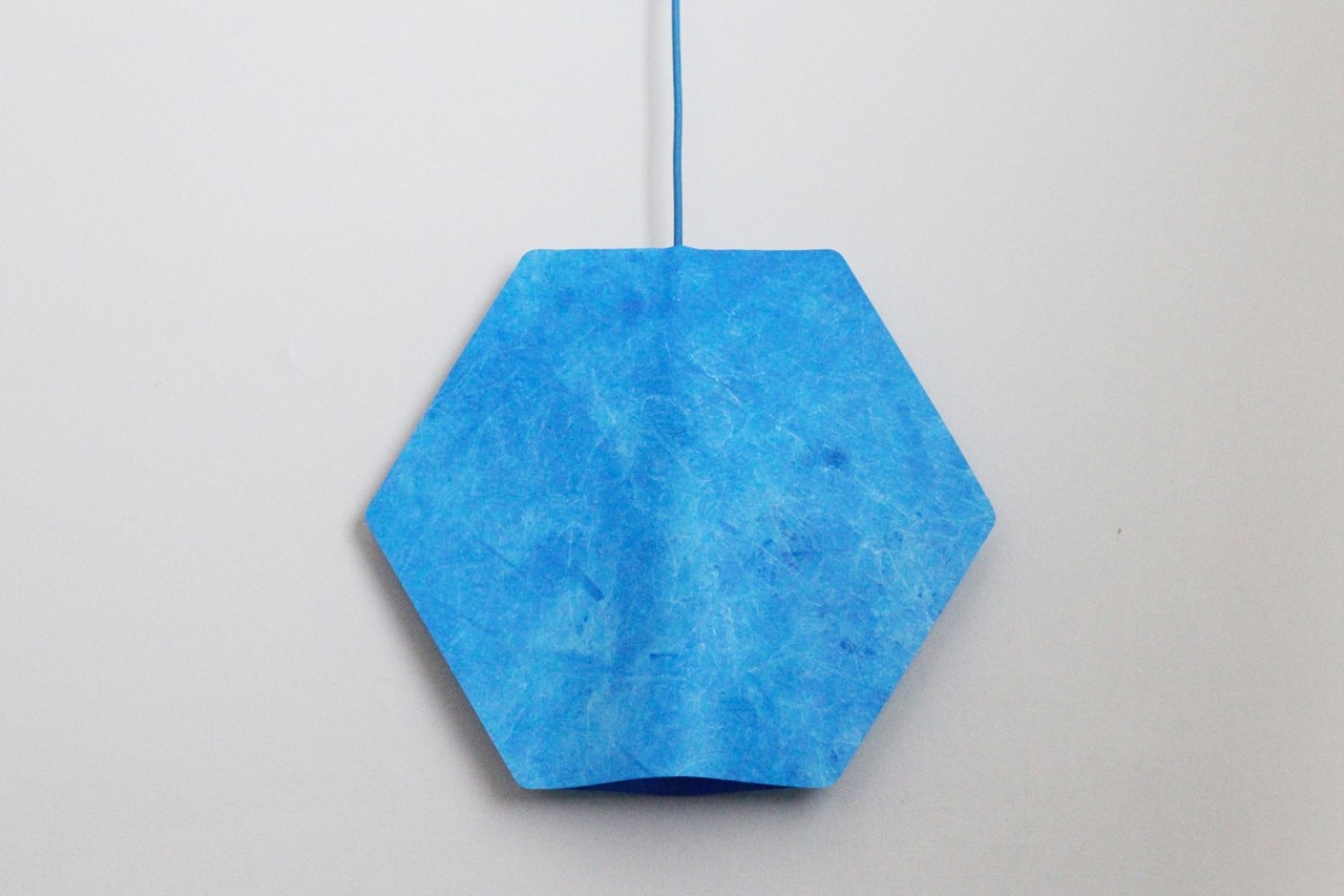 La famiglia di luci è composta da 6 forme e 6 colori. Il disegno, volutamente minimale, consente 36 possibili variazioni. Ciascun paralume può essere applicato direttamente a una luce a sospensione preesistente. La leggerezza consente inoltre di arrotolarli e trasportarli facilmente.
